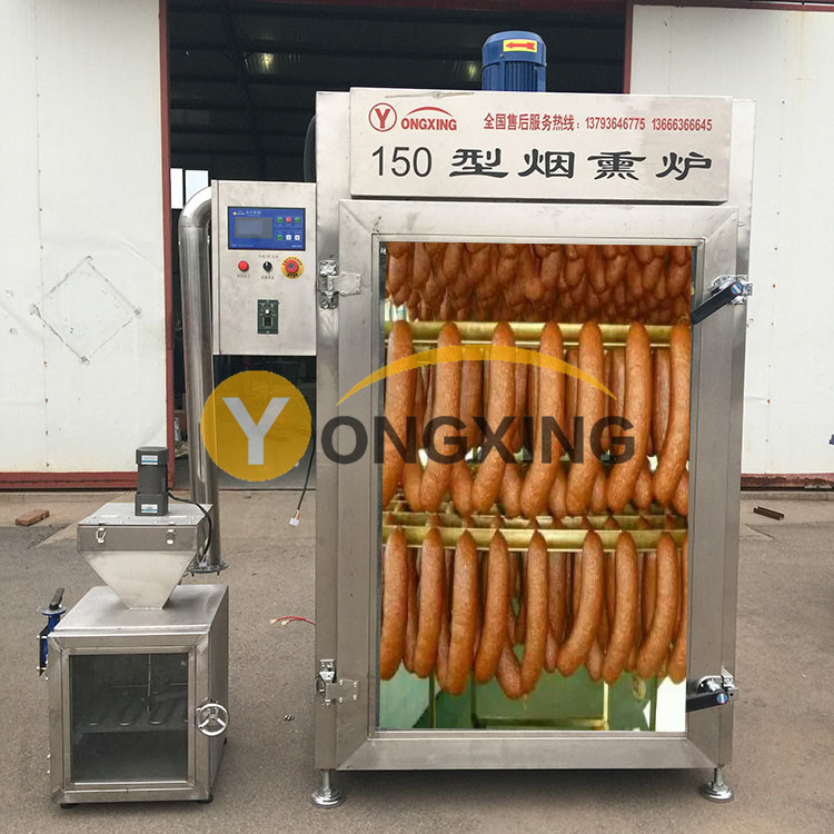 4.烘烤。將紅腸放進(jìn)烘箱內(nèi)烘烤,烘烤溫度掌握在65~80℃,烘烤時(shí)間按腸衣細(xì)粗分別為0.5~1小時(shí)。烘烤標(biāo)準(zhǔn)以腸衣呈干燥,肉餡呈紅色為佳